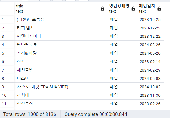 WHERE 영업상태명 LIKE '폐업';