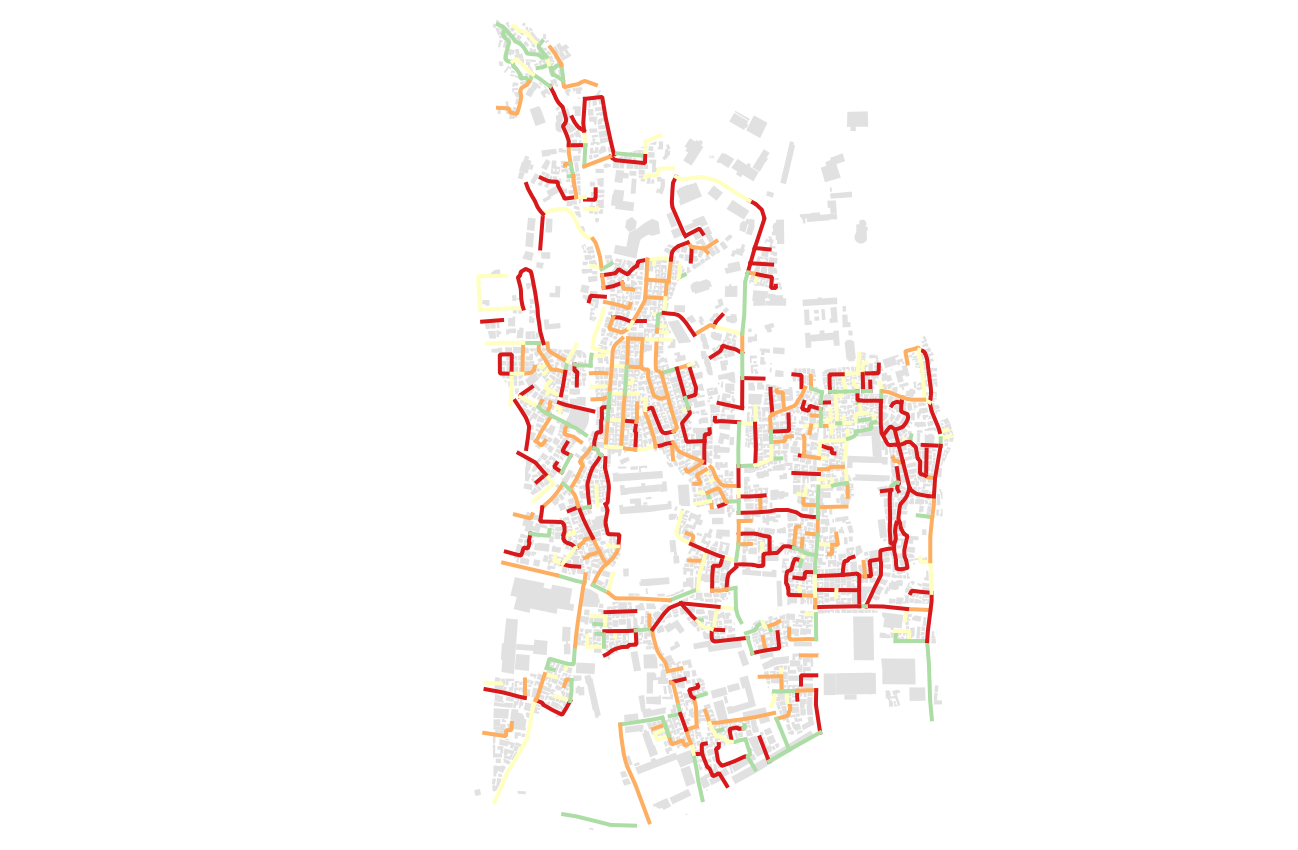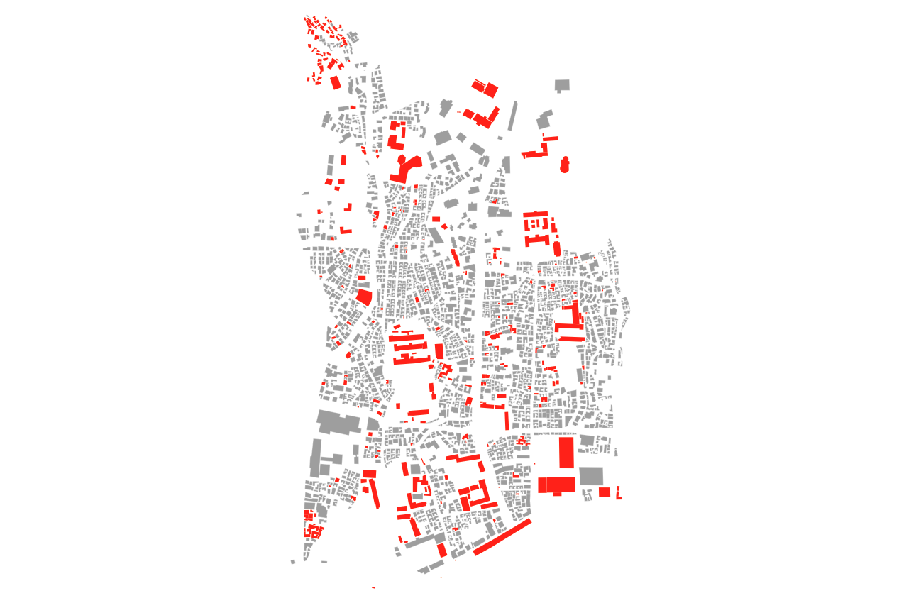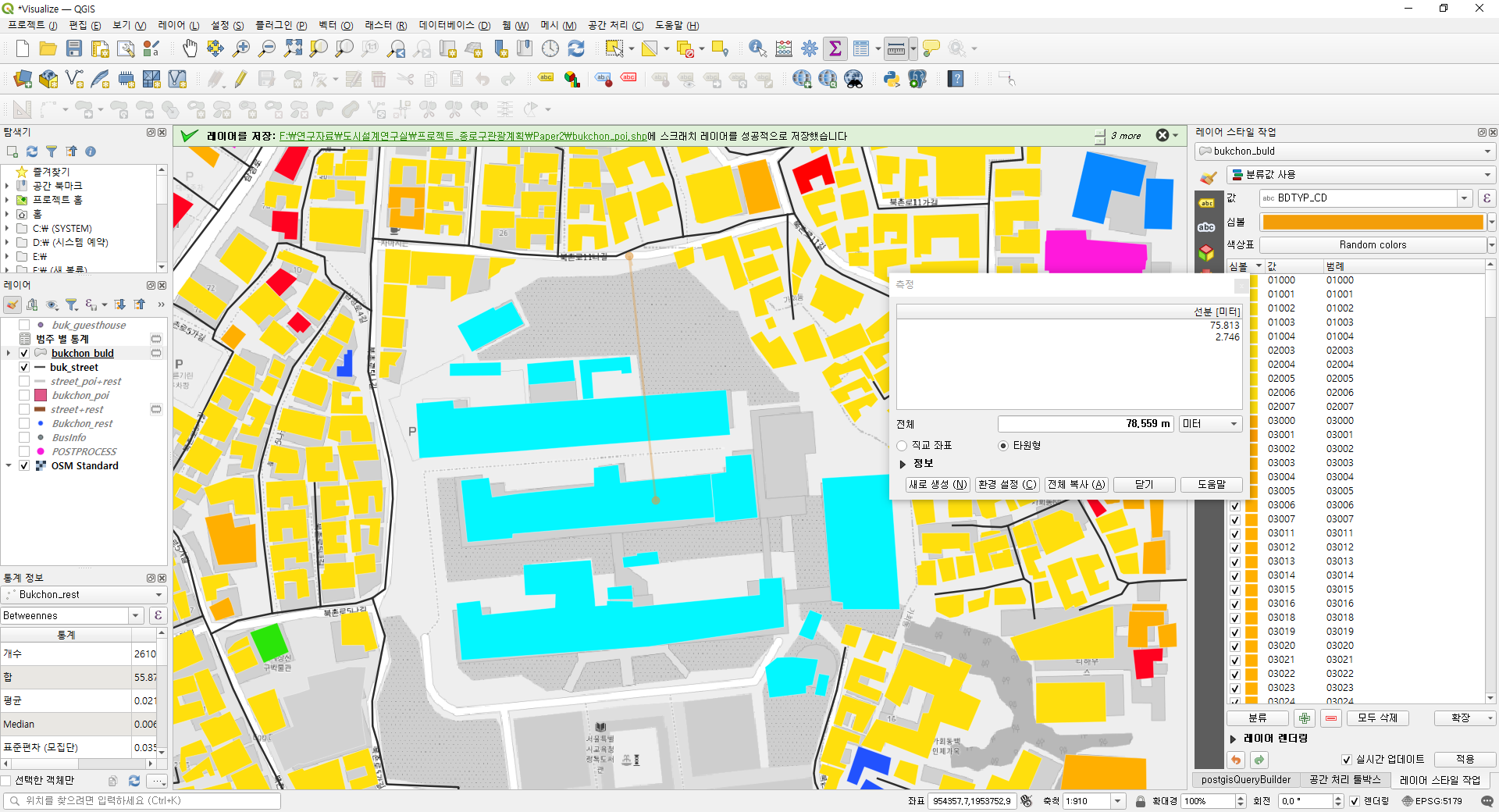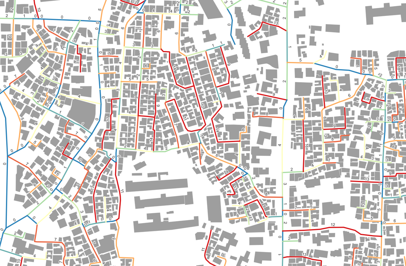 예를 들어, 결과물을 단순히 붙어있는 건축물의 갯수 기준으로 시각화 한다면