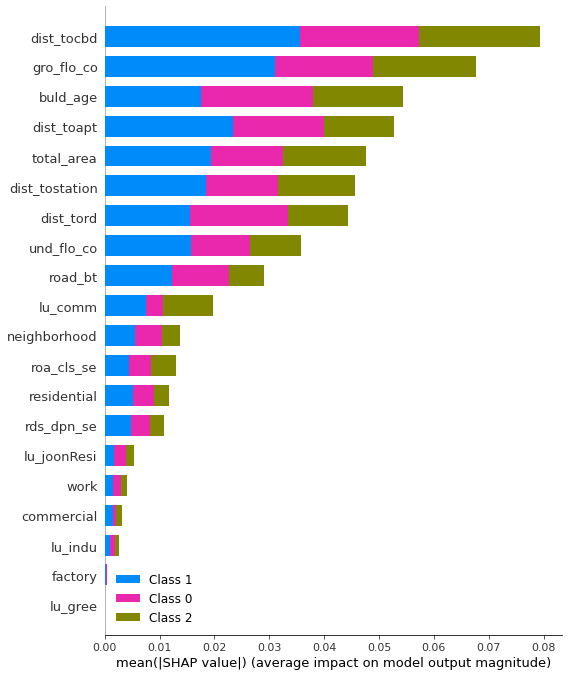 ################## 첫번째는 bar plot이다. class 별로 shap 값의 평균을 모아서 비교해준다.