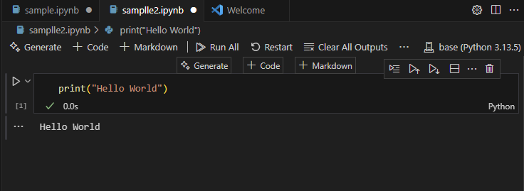 sample.ipynb 라는 파이썬 노트북 파일을 만들어보았다.